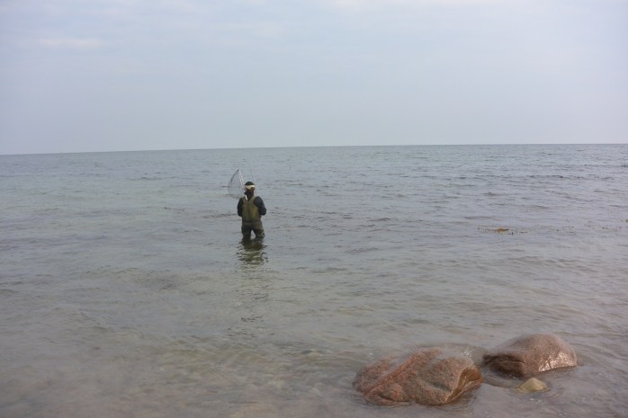 Vi så flere havørreder springe helt fri af vandet men de ville ikke noget. Et par nye fluefiskere havde haft en fræk havørred der nærmest havde hoppet lige ned på deres flue:-)