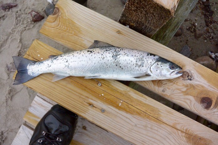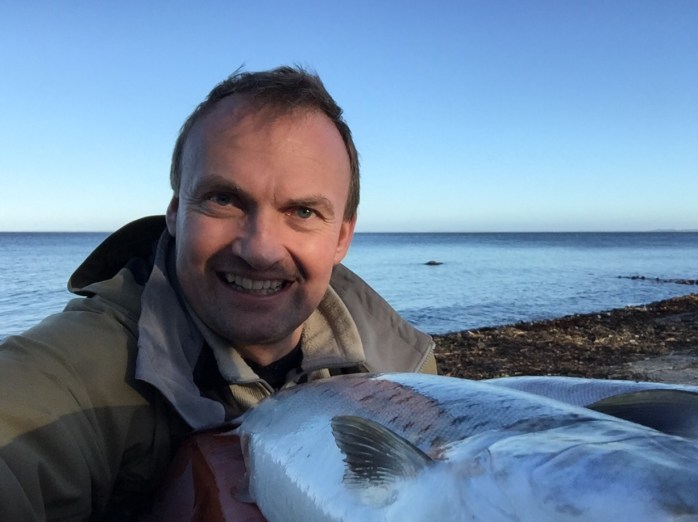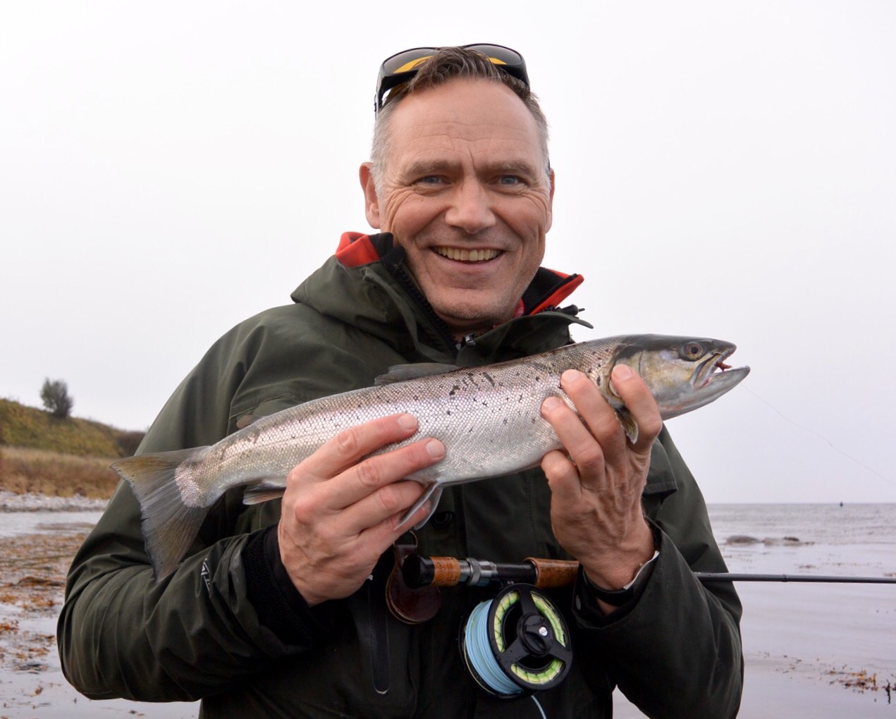 Stort tillykke til Kim den første havørred på fluestangen. Det er altid noget specielt at mærke liv for enden af fluestangen.