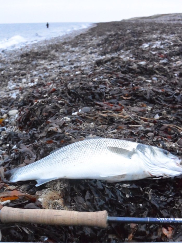 Dagens sidste spot på Tour de Nordvestsjælland gav os en stor overraskelse da Hans med hans fladbuk fik overlistet en meget flot stor havbars (50 cm) under et kast langs med kysten.