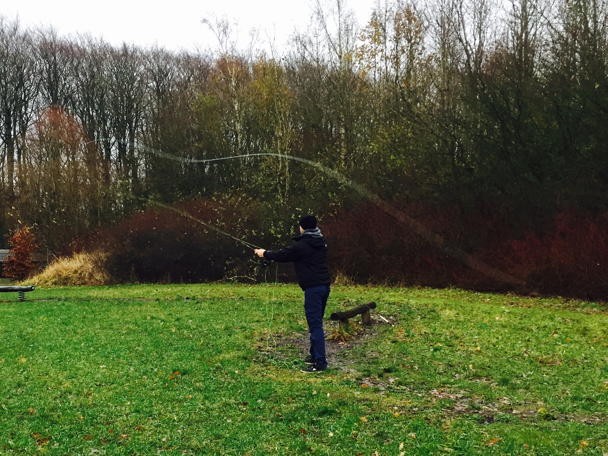 Lørdag afholdte jeg årets sidste fluekastekursus på mit landsted lige uden for Holbæk. Vi fandt læ i skoven 5 min. fra mit kursuslokale.