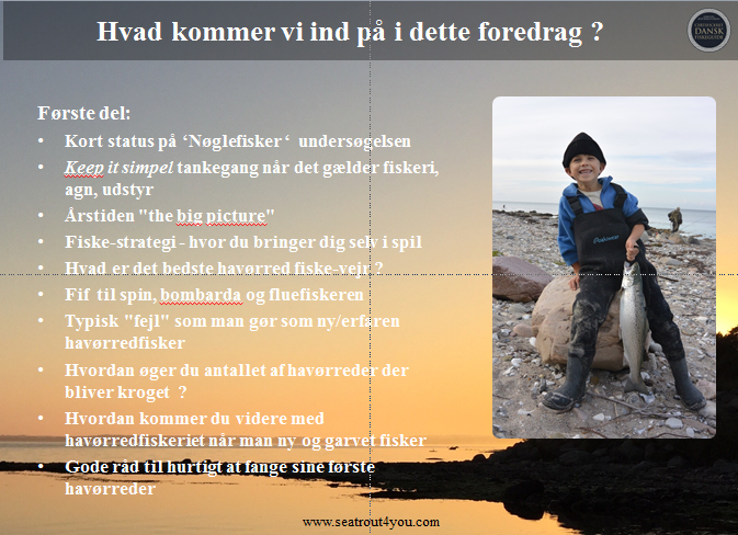 Mit nye foredrag om havørred-fiskeri, Keep it simple blev rigtig godt modtaget af de 60 deltagere (20 på ventelisten) der var mødt op på restaurant Store Børs som ligger på Roskilde Havn.