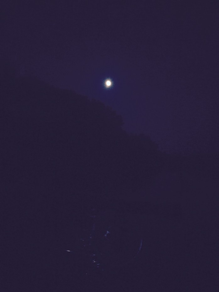 Månelyset hjalp os til at finde stien til hen fiskestrækningen som ca. 15 min fra P-pladsen. Når man går der i mørket føles turen hen til fiskestrækningen ekstra lang.