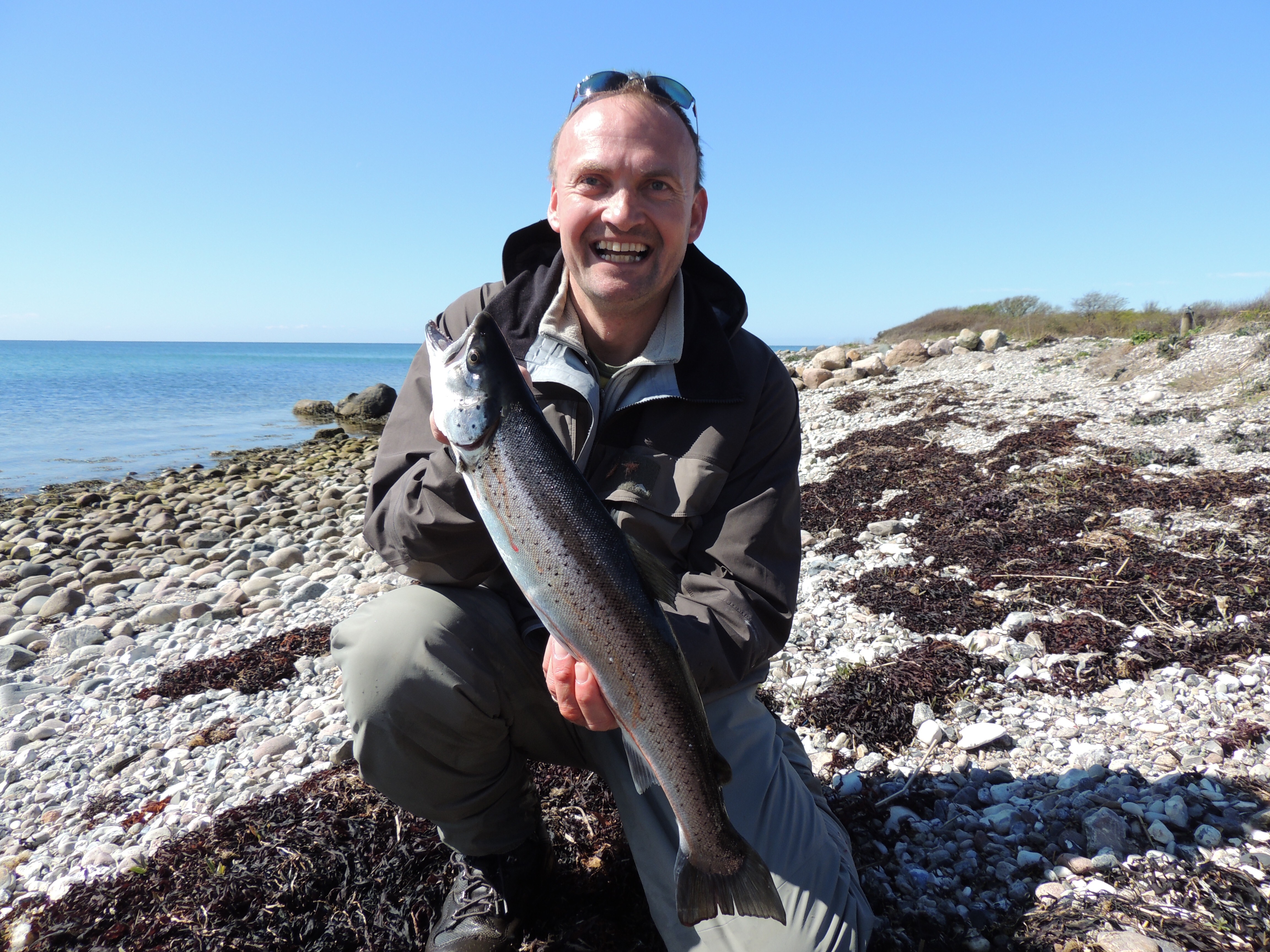 Helge Rødgaard Larsen med en flot havørred fra fjorden. Det blev nænsomt genudsat.