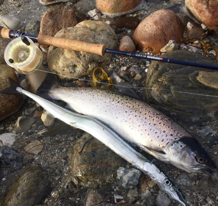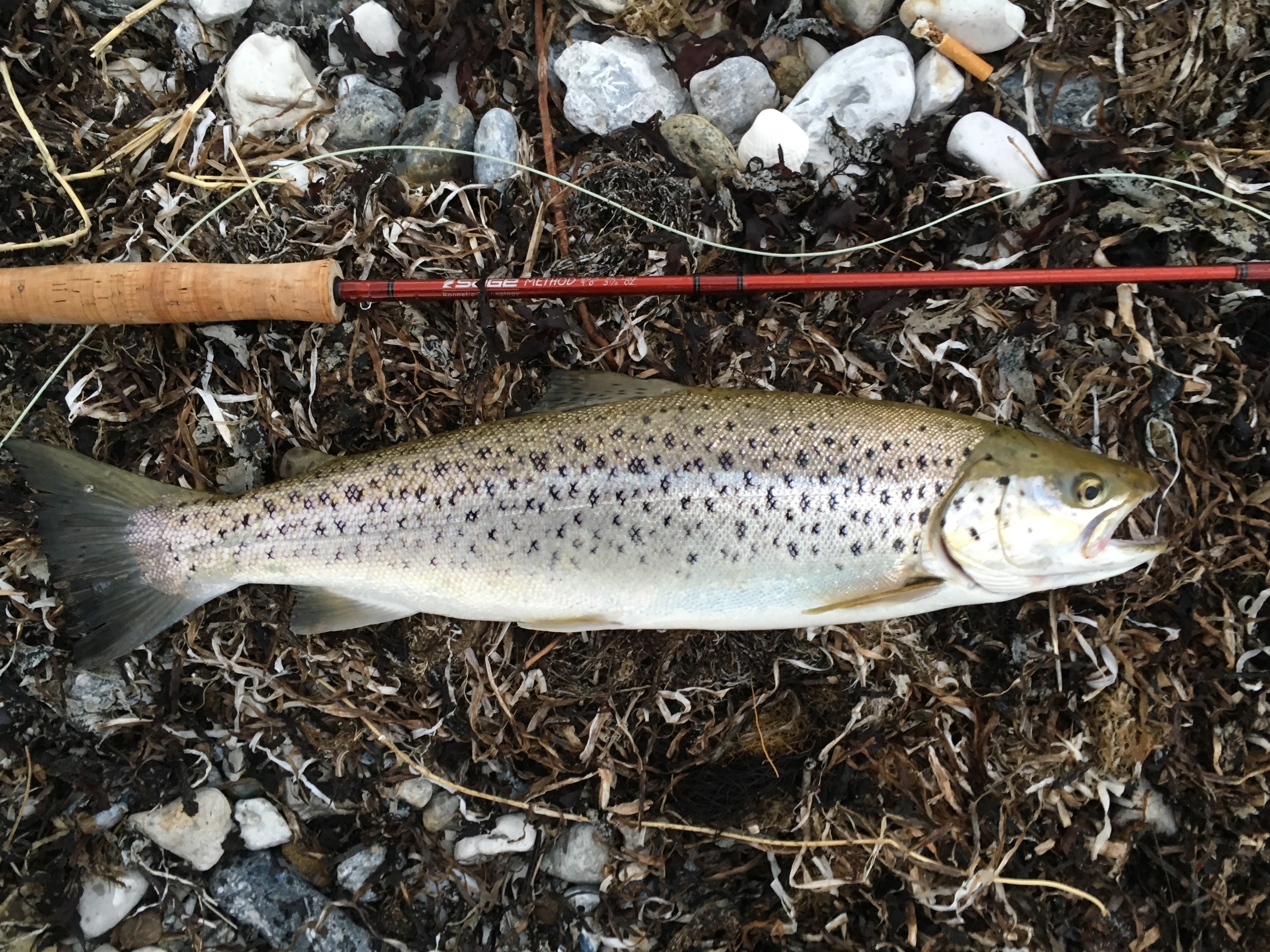 Havørreden som blev overlistet var 45 cm og gav en vild fight. Stort tillykke med havørreden herfra.