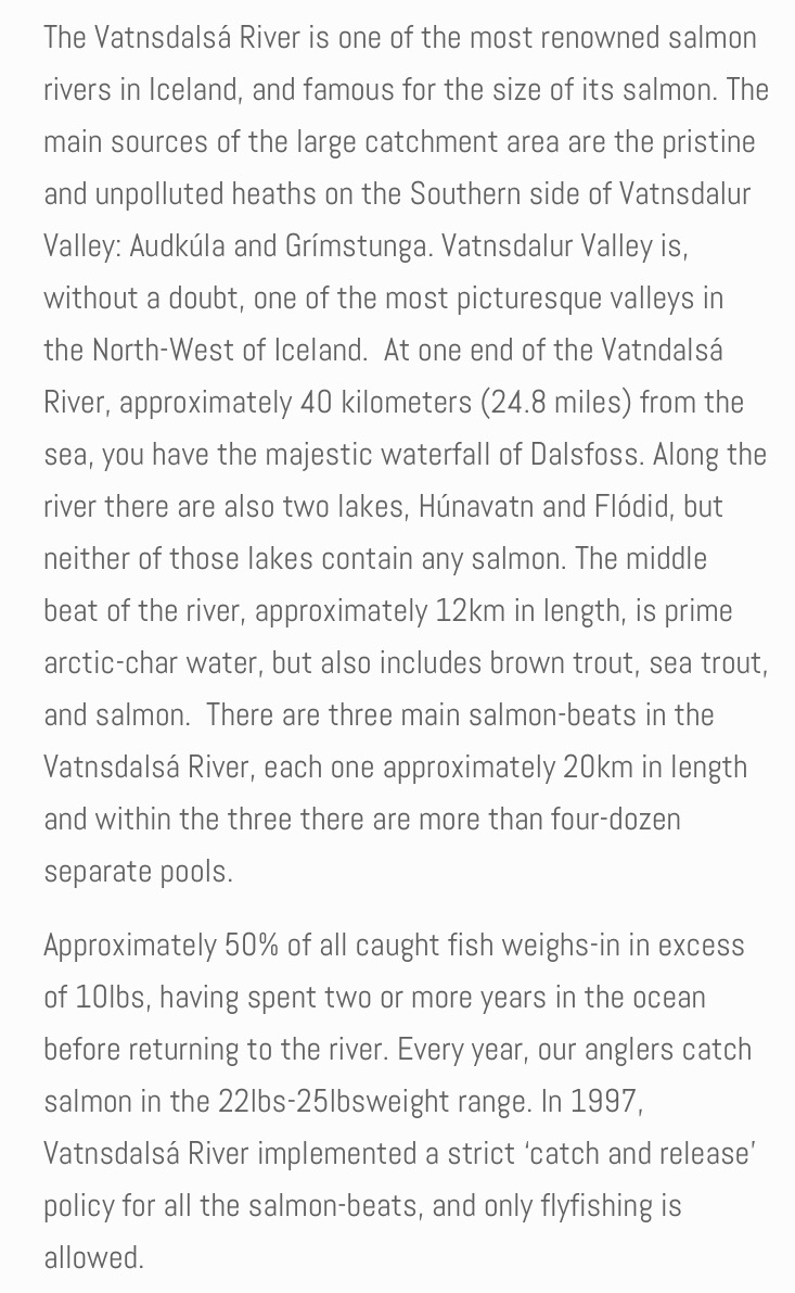 Nedenfor er beskrivelse Vatnsdalsa fiskeriet.