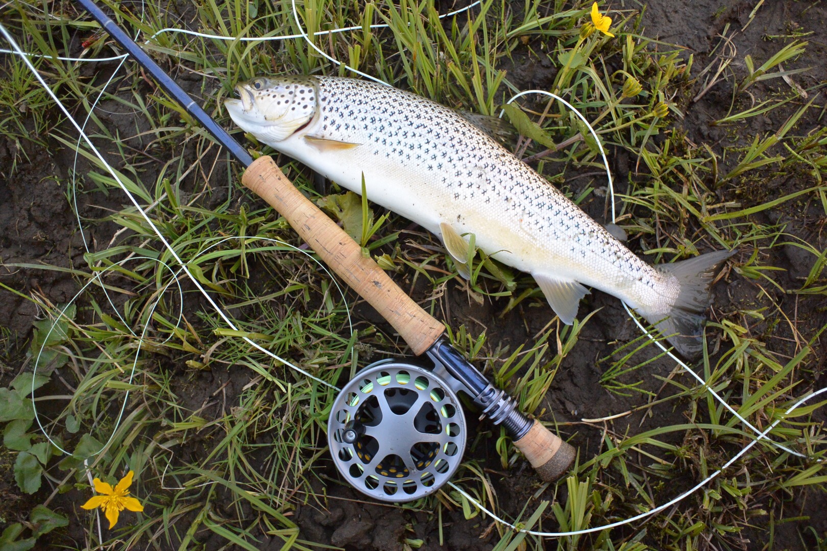 Billedet herunder viser en af mine store blanke fjeldørreder (Rødding) tæt på 3 kilo taget på en klasse 6 fluestang.