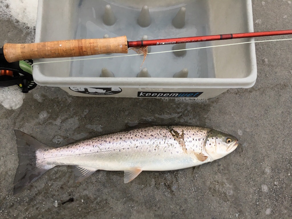 Peter har sat sig for at fange 50 havørreder i år på sin fluestang. Han er rigtig godt på vej mod målet da han nu er oppe på havørred nr. 36.