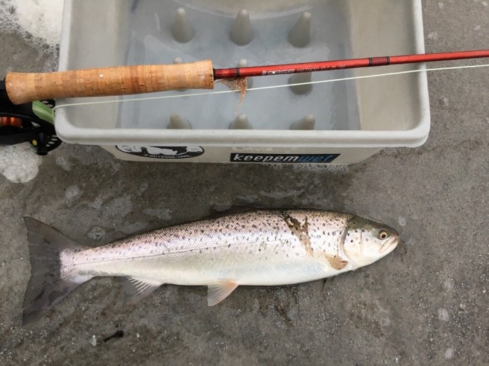 Peter skrev til mig at det var vildt fiskeri! “Jeg har aldrig oplevet så mange springene fisk! Vandet kogte af fisk efter solen var gået ned!” Han mistede også en fin fisk!