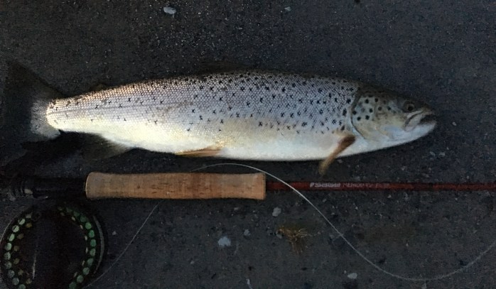 Peter Kresten Nielsen har fanget to flotte havørreder på under aftenfiskeri de sidste aftener.