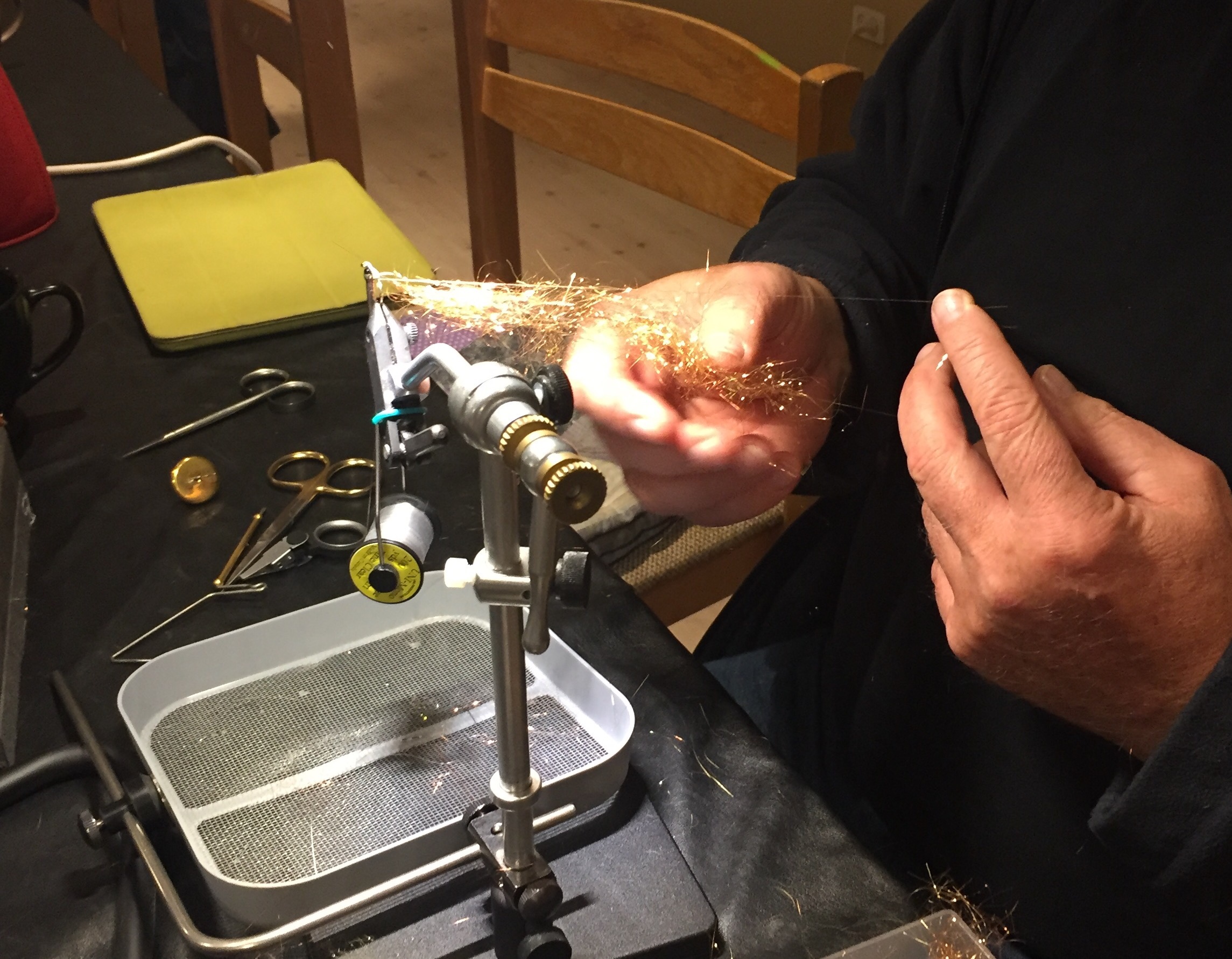 Man medbringer selv fluestik, værktøj. Jeg har gode lamper da godt lys er vigtigt når der skal bindes fluer.