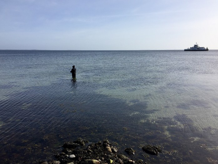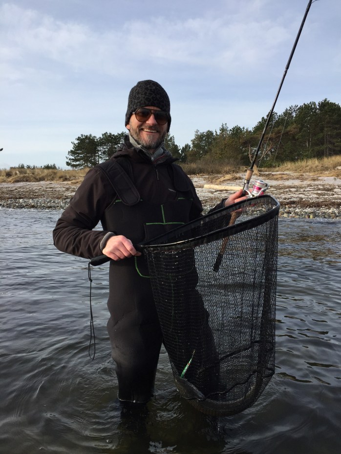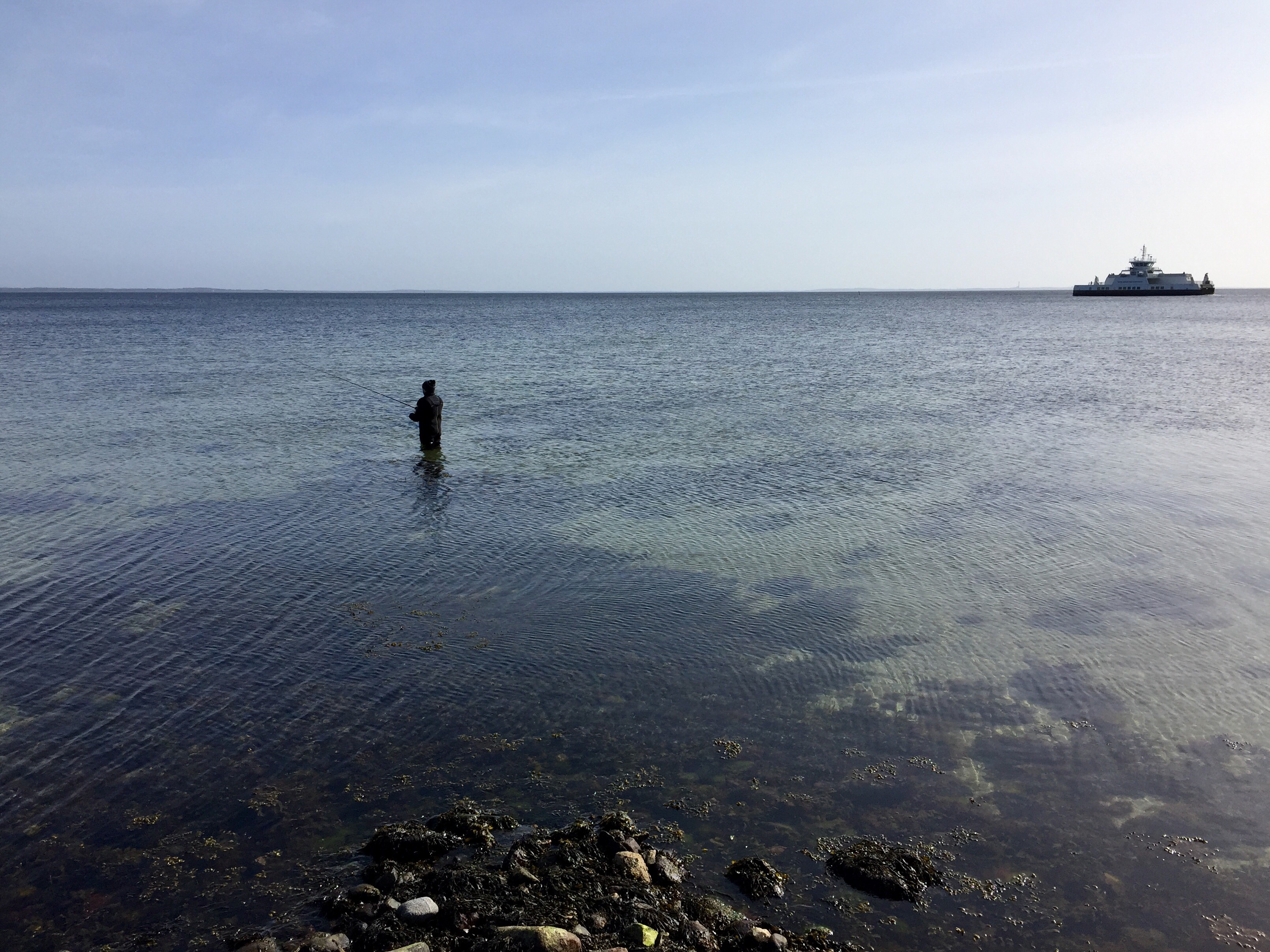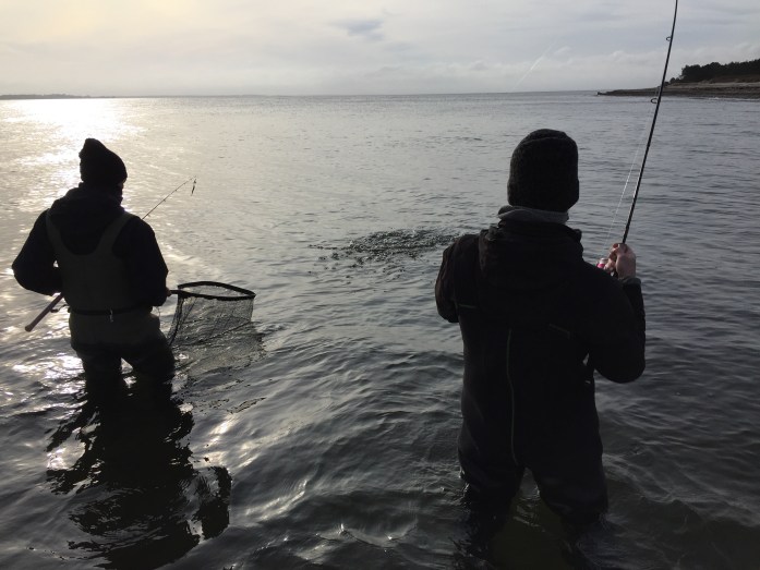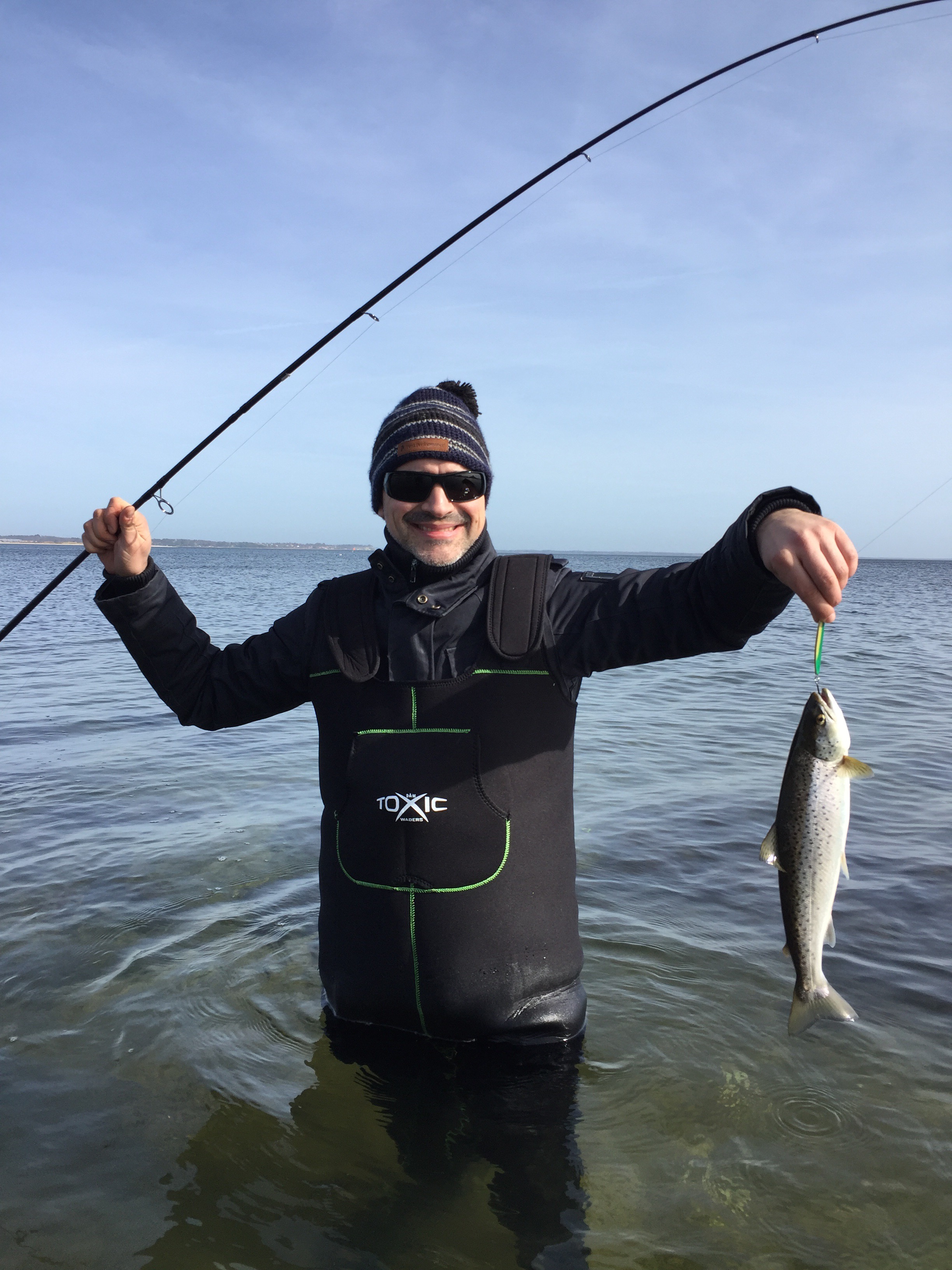 Det er dejligt at mærke solens varme mens man jagter havørreder i det 4 grader kolde vand.