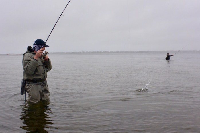 Der blev fiskes fokuseret videre på spottet og der kom flere havørreder på land. Der blev også fanget to havørreder på samme tid da et par fisk havde hugget på ophænger-flue og blink.
