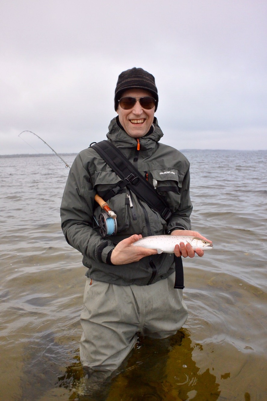 Allerede efter 15 min. var første PR i hus til Thomas da han fangede sin første havørred på flue. Deltagerne havde selvfølgelig fået nogle kobberbasser der skulle prøves. Stort tillykke med PR herfra.
