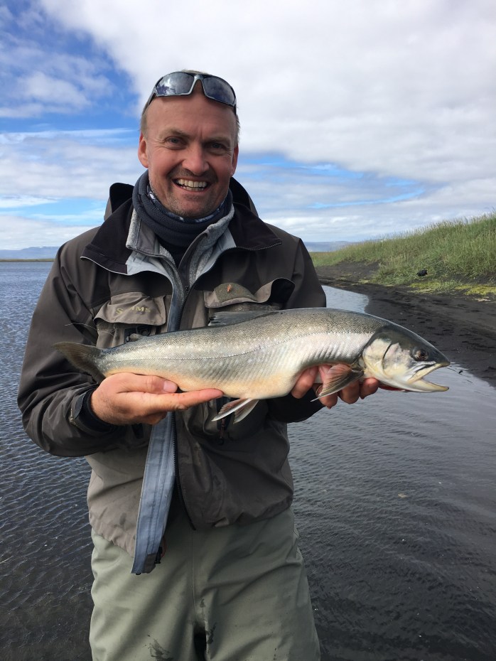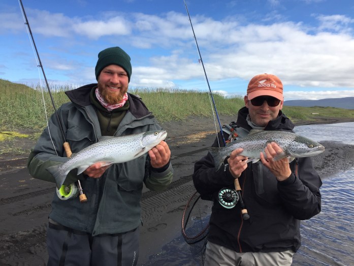 Vi havde i år to dage med meget hård vind (25m/sek) lige på kysten som selvfølgelig gav os nogle udfordringer men heldigvis er der altid strækninger hvor vi kunne søge læ. Fluerne der virkede bedst i år var “Francis” og “sølvsvinet” (vi kunne ikke udtale det islandske navn).