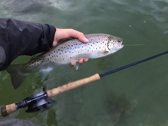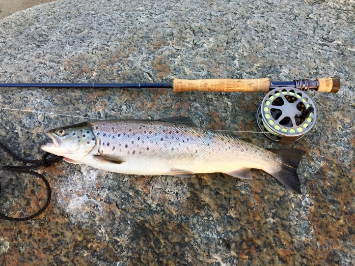 Allerede efter 15 minutters fiskeri kom de første havørreder på land på blink og kobberbasse-fluen.