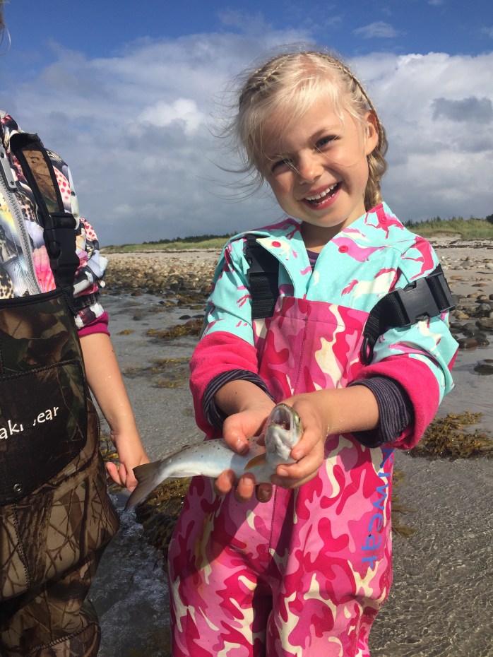På sidste tur i lørdag var der også fangst på en eftermiddags-fisketur. Det blev til nogle mindre havørreder som pigerne meget gerne vil rører og genudsætte.