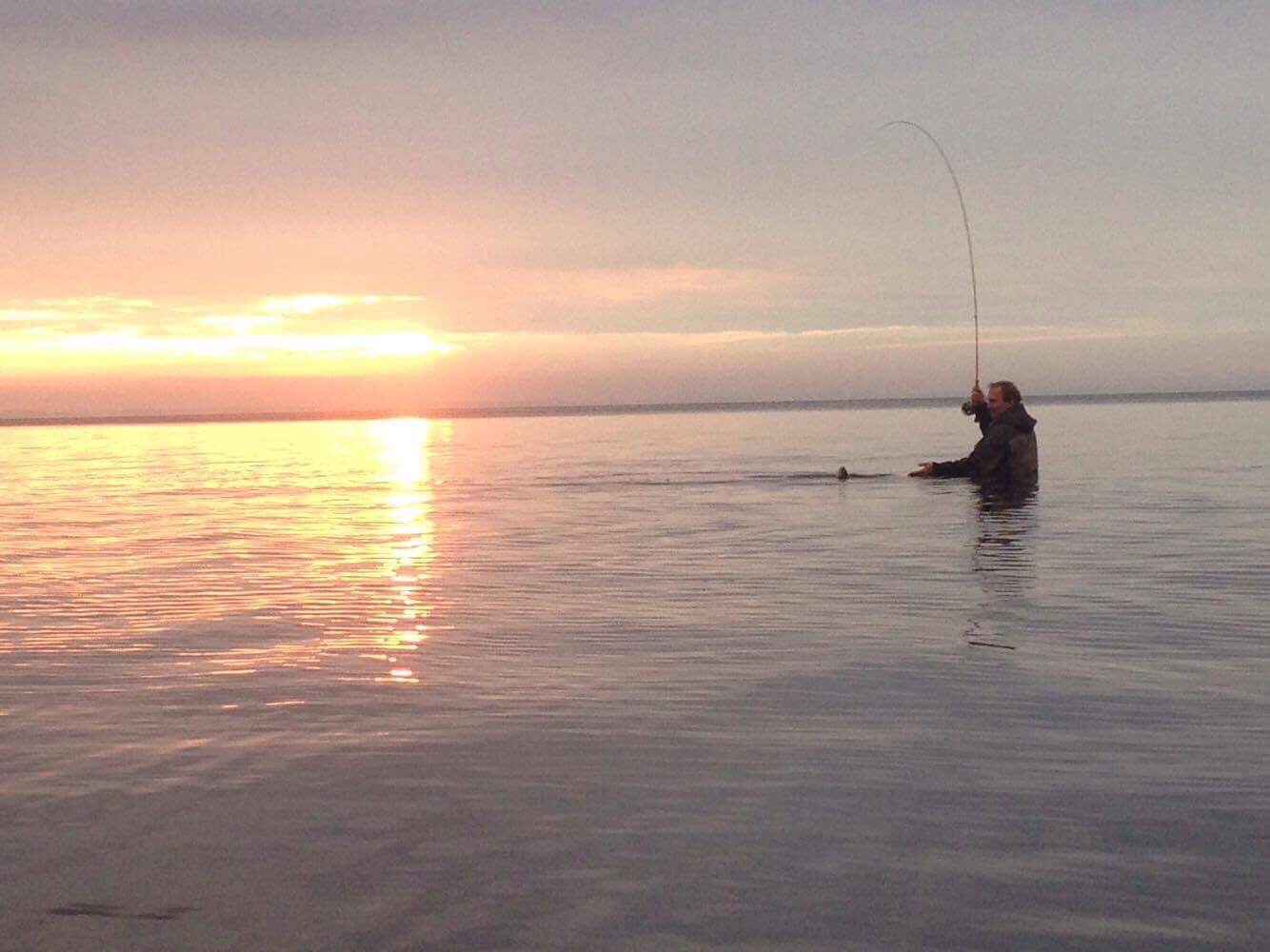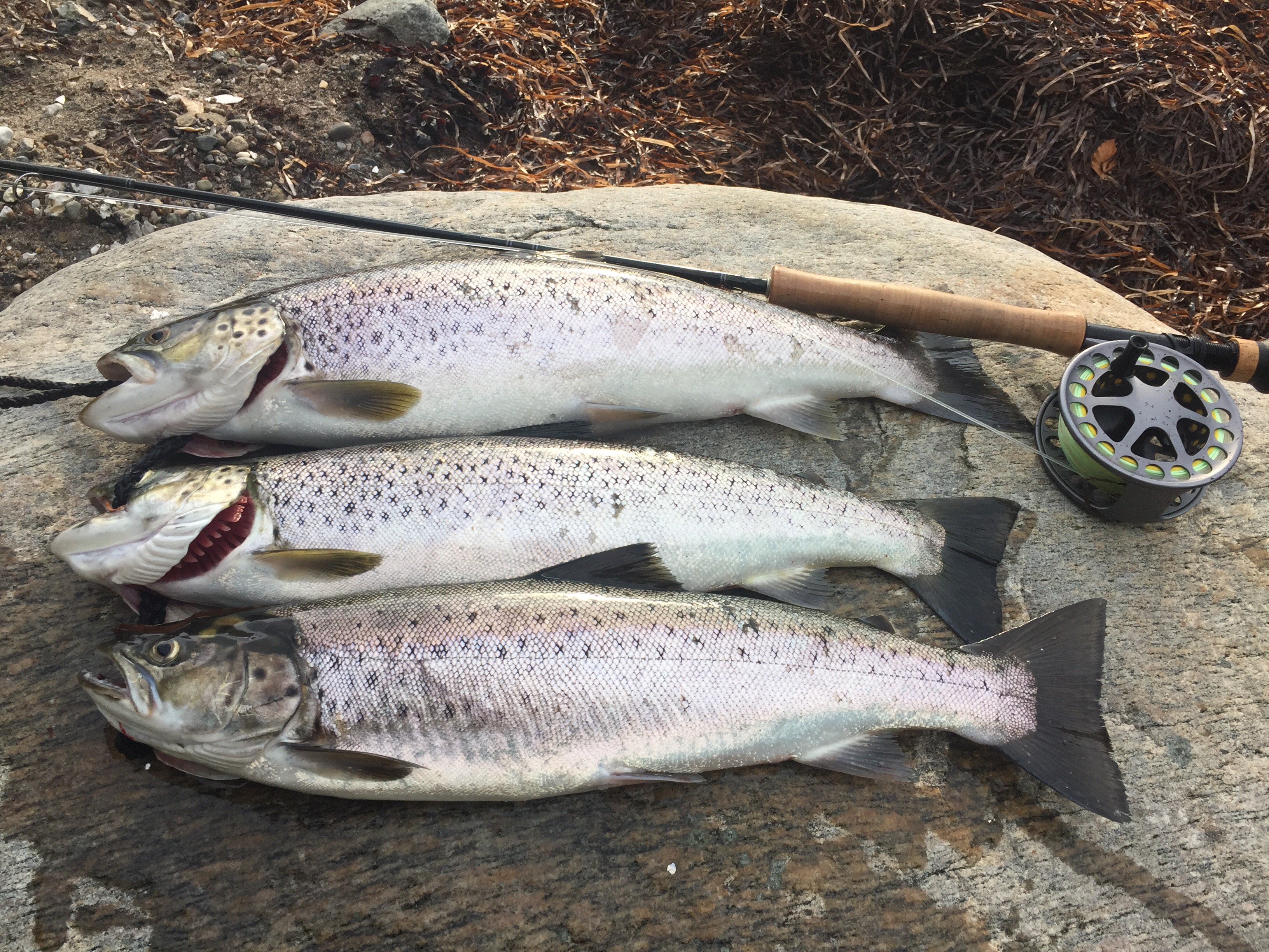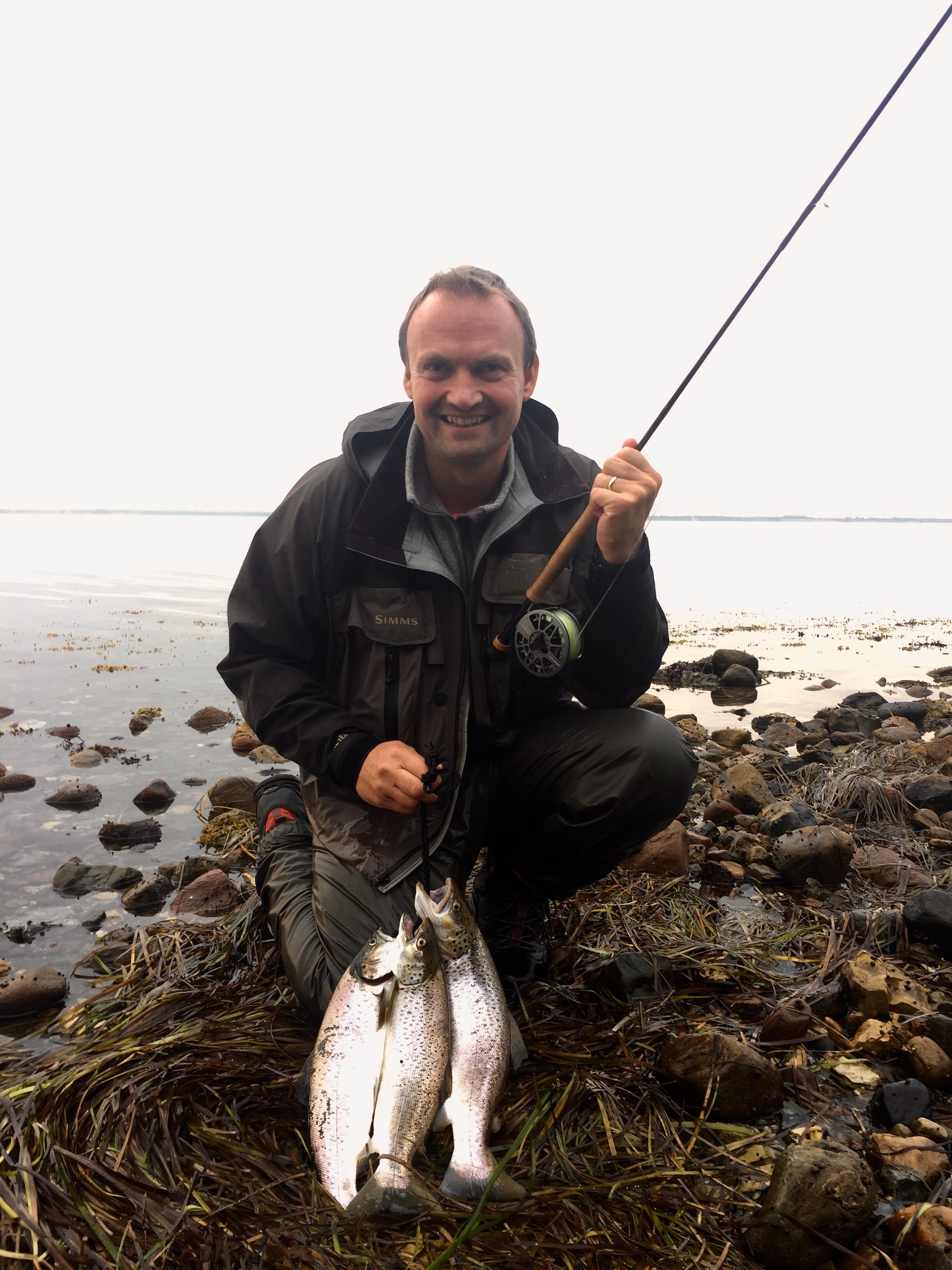 – 9 havørreder oppe og vende på min kobberbasse flue. Fiskene tog helt ude kastet. Så det var vigtigt kunne kaste langt denne morgen.
