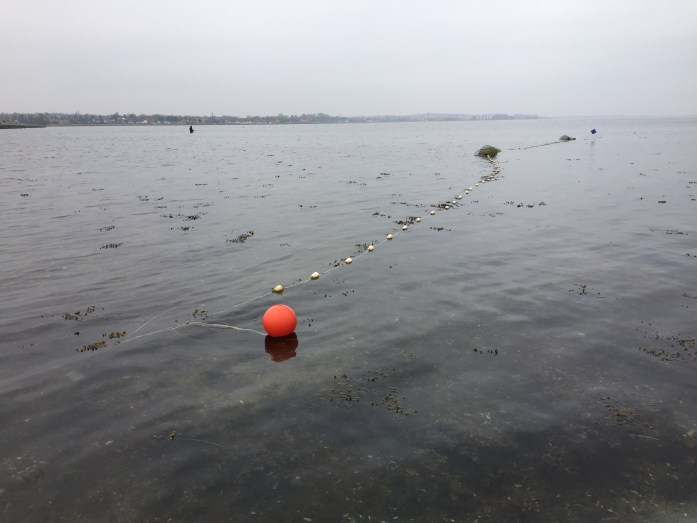 På det andet spot var der allerede kommet reje-ruser ud. Det virker noget tidligt i forhold til tidligere år. Jeg tillod mig kigge lidt nærmere på en af ruserne.Der var lidt havørred-guf i rusen men ikke nogen fjordrejer.