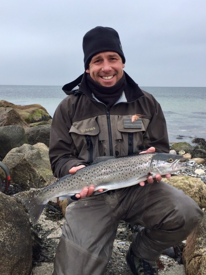 Vi mødte heldigvis en lokal fluefisker der kunne fremvise en super flot 60+ havørred der var taget uden vi kom til fiskepladsen. Stort tillykke til Sten Christensen med den flotte fangst.
