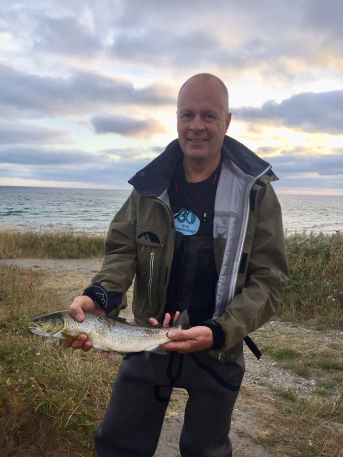 På min sidste guidet tur d. 4 august gik det ok med fangsterne trods varmen og frisk vind. Vi fangende 3 havørreder på turen. Største havørred fik Peter Skjoldbøl på det første spot.
