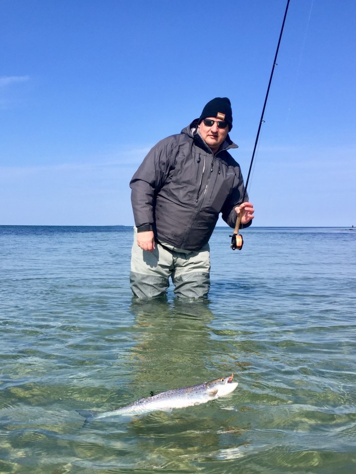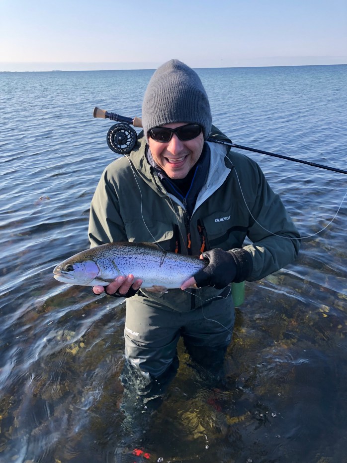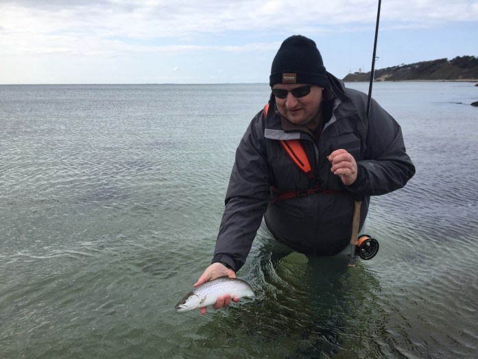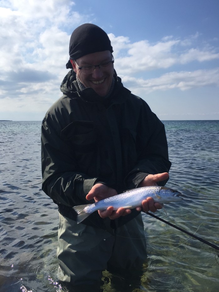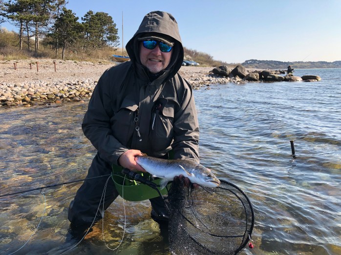 Lars Cristian Slyngborg var særlig glad for sin første havørredfangst på fluestang. Det altid en vildt oplevelse når der pludselig er noget der rykke i kobberbasse-fluen. Stort til Lars med den først blanke på fluestang:-)