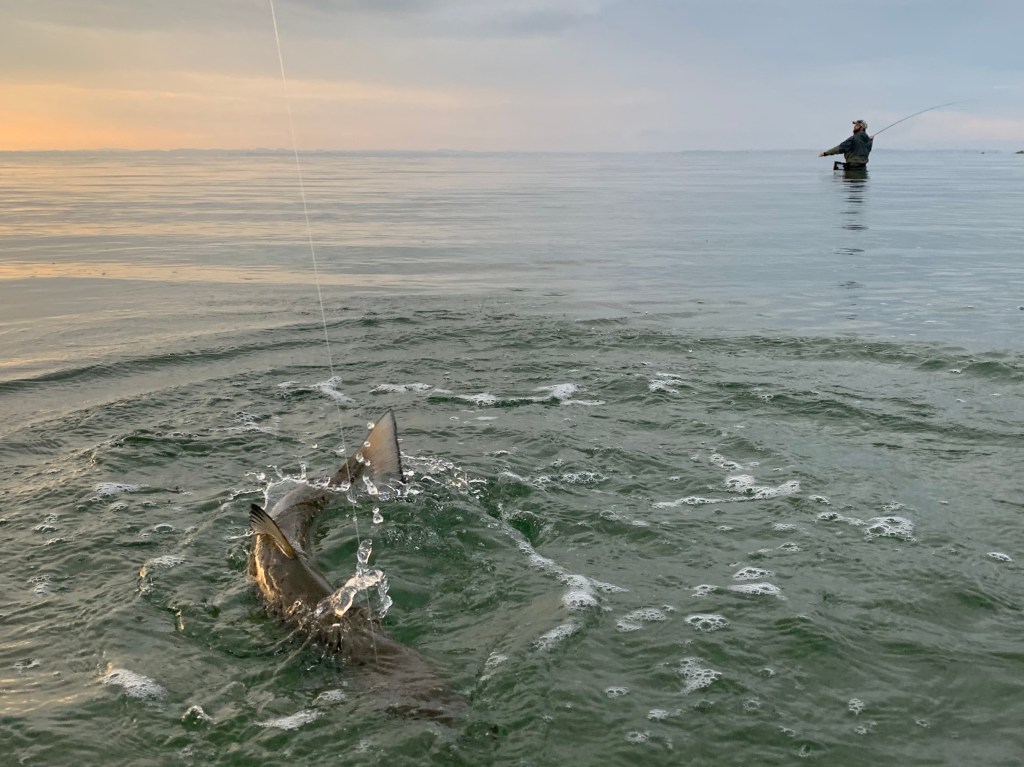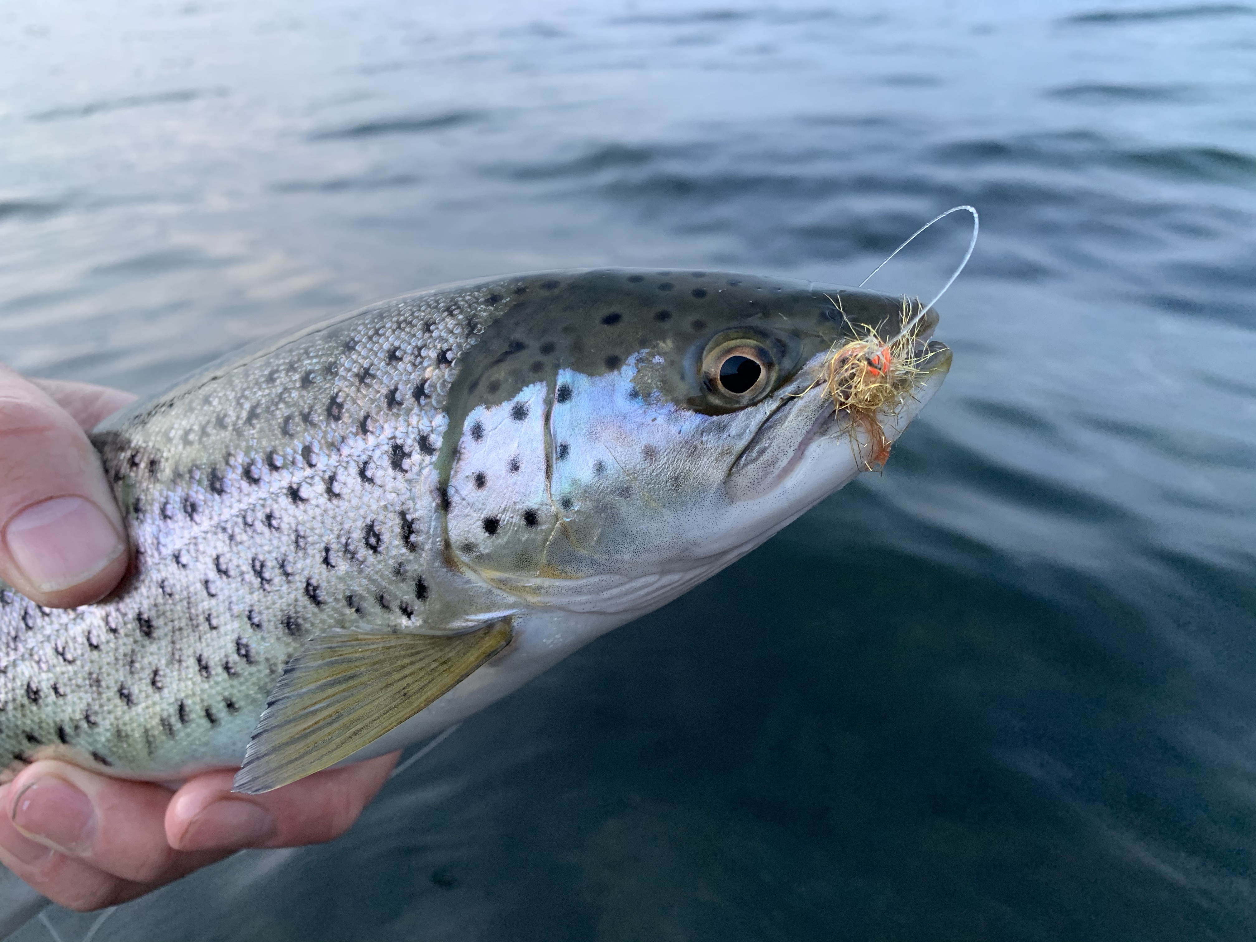Hertil morgen blev det til to havørreder som ikke kunne modstå min Guldbasse- flue.