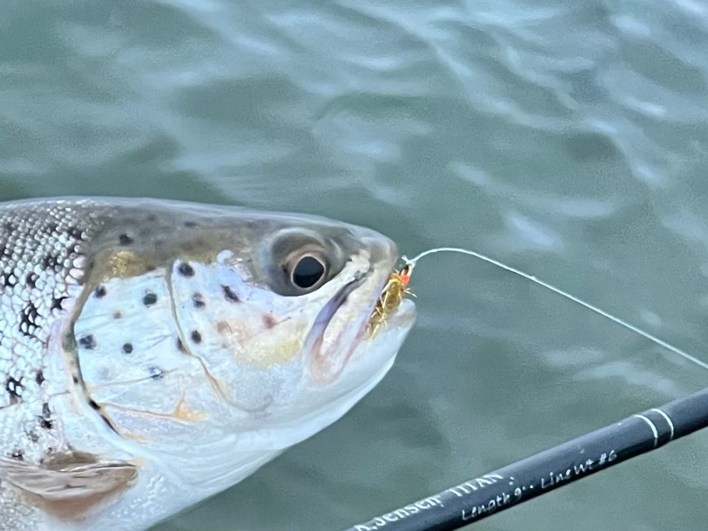 Isefjorden er ved at vågne til noget godt forårsfiskeri. Dagens morgenfisketur til den sydlige del af fjorden gav fint med flex i fluestangen.