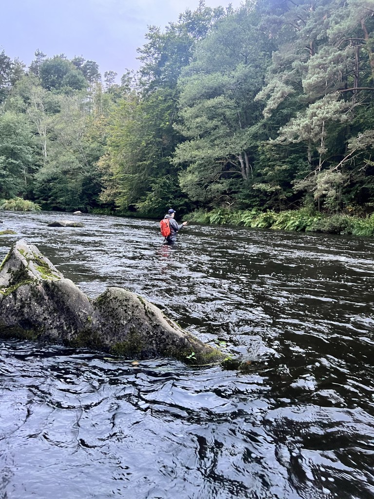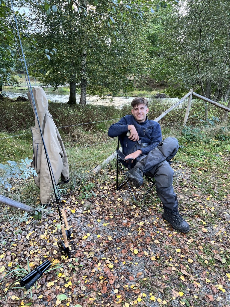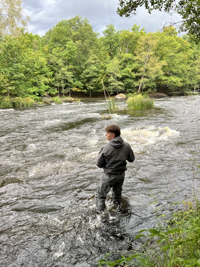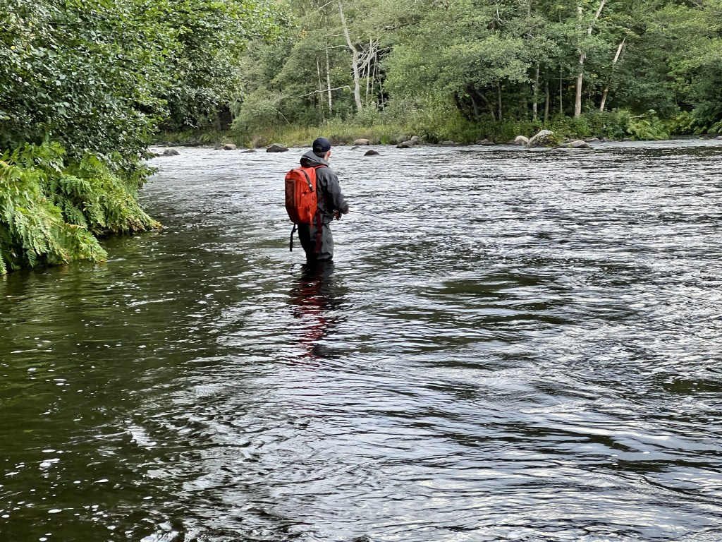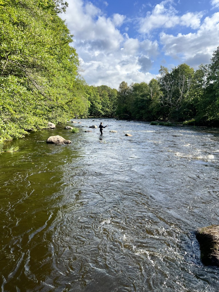 Vi starter fiskedagene på de øvre stræk af elven som har noget god fart på vandet. Vi håber selvfølgelig på at vi kan overliste en laks eller havørred der er på vej længere op i elven.