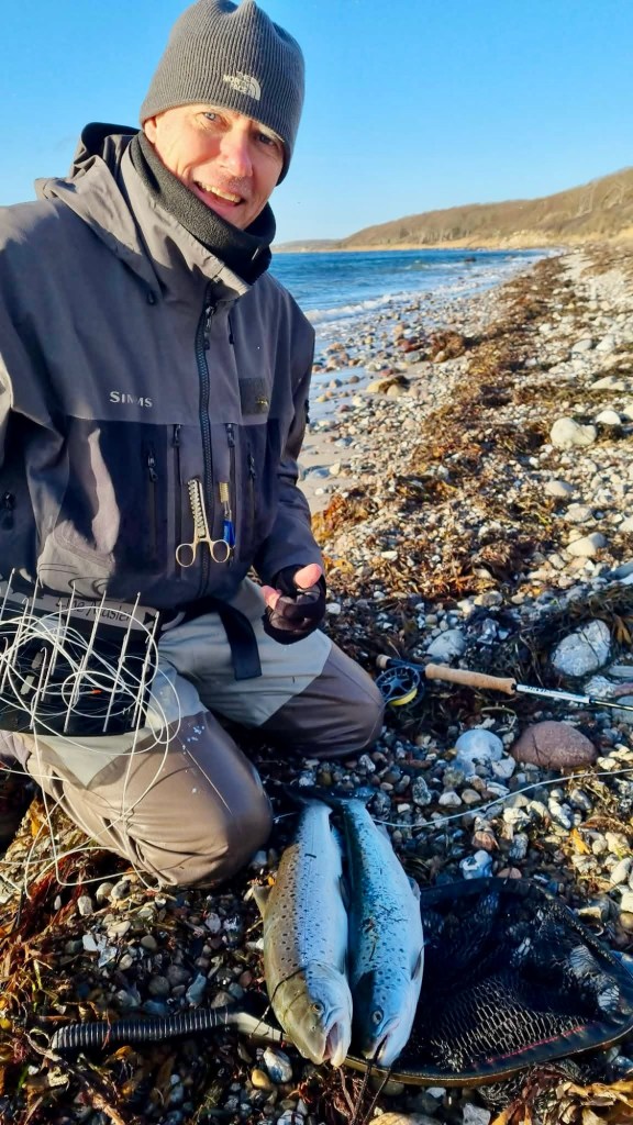Allerede kort tid start var der kontakt med flere fine blanke havørreder 🐟🎣.
