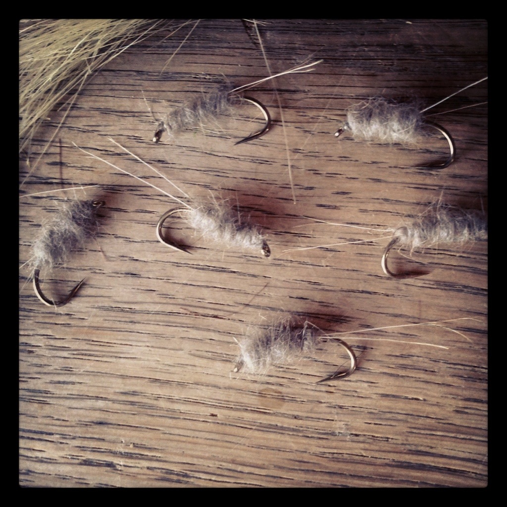 Dette er min version af hareørenymfen som må siges at være klassiker, hvis eneste bestanddele er krog, vægtbelæstning, haletråde og dubbing. Den blev skabt som en tangloppeimitation, men faktisk er dens styrke at den ligner en masse fødeemner som tanglopper, rejer, tanglus, kutlinger og fiskeyngel uden at ligne noget helt præcist.