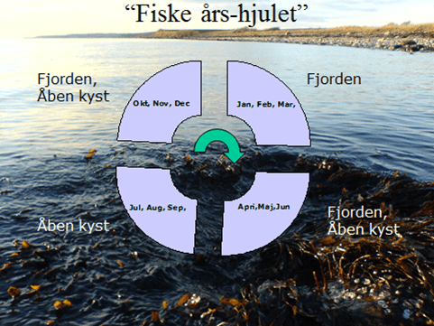 Havørred årshjulet skal læses sådan at i månederne januar, februar og marts er det oplagt at vælge fjorden hvis man skal afsted. Specielt hvis det er en “kold” vinter.