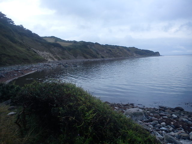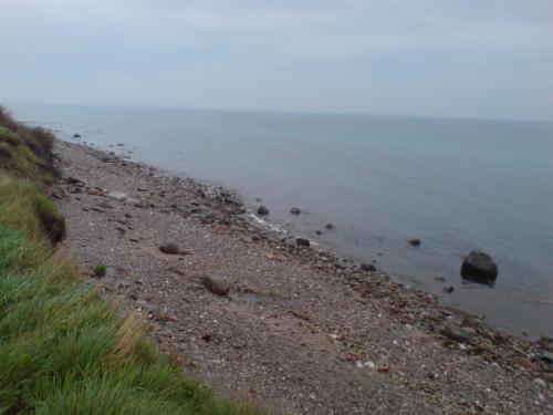 Til højere ligger “vikinge-borgen” som den kaldes lokalt. Der er også en del mørke områder der er sammensat af blæretangsbælter, store sten og sandpartier.
