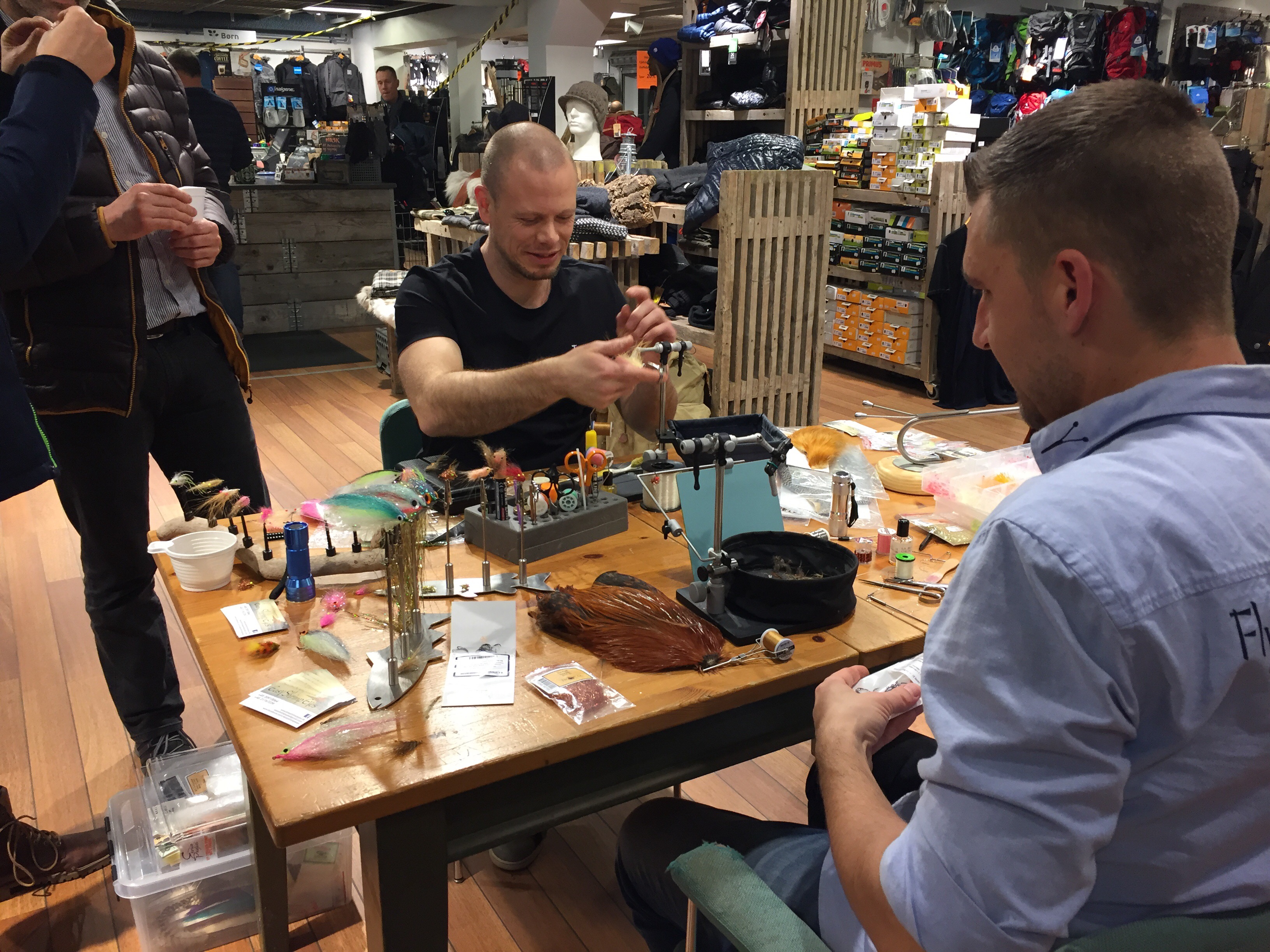 Efter hyggesnak gik det løs med fluestængerne monteret med kobber- og guldbasser.