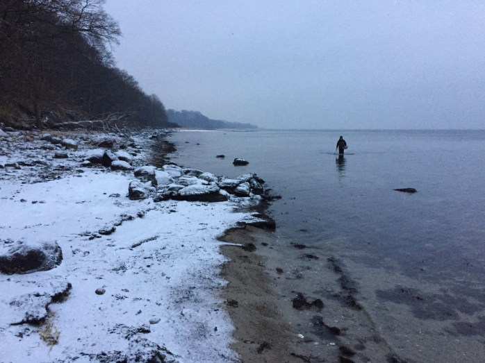 Vejret viste sig fra den lumske side med sne, isslag og støvregn. Vi heldigvis udstyret i orden til det kolde vejr og vand (2 grader).