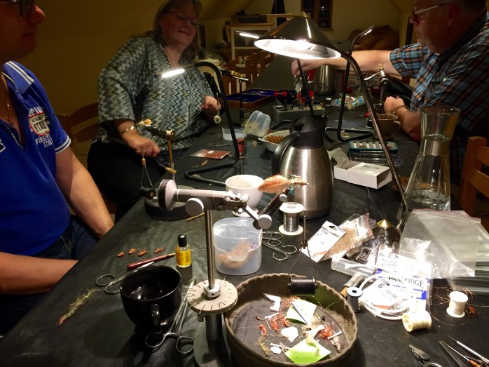 Der blev virkelig gået til stikket og der var mange gode fif til deltagerne. Vi kom også ind på fisketeknik historien bag fluerne og grejsammensætning.