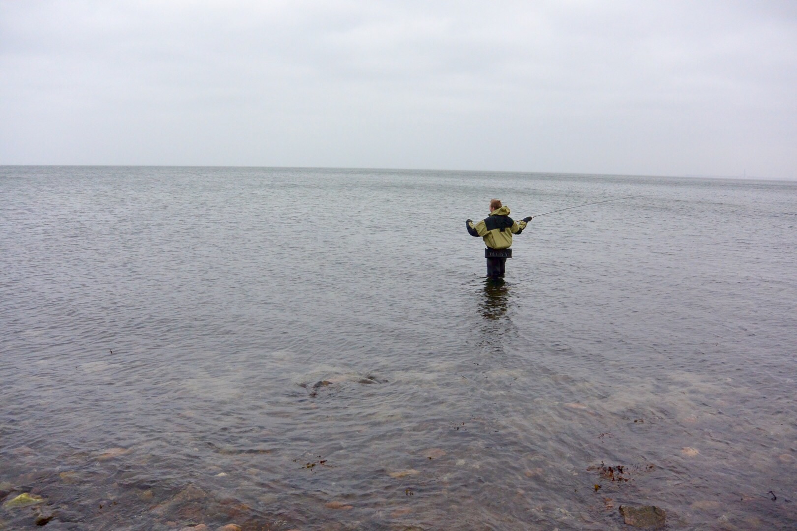 Søndag afholdte jeg en fuldt booket guidet kysttur til Isefjorden. De fleste fiskere var nok blevet hjemme pga. den kraftige vind. Flere af deltagere havde spurt mig om turen blev til noget. Jeg har endnu ikke aflyst en tur pga. af vejret da jeg altid kan finde nogle gode spots der ligger i læ for vinden. Kraftig vind fra vest giver normalt gode forhold til at fange havørreder da der kommer uro i vandet og det er høj vandstand så fiskene kan komme helt ind under land for at søge føde.
