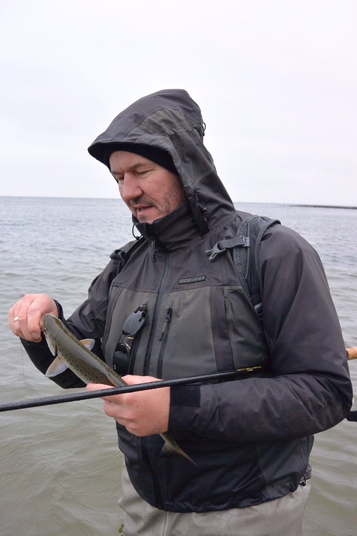 Det var noget mere lavvande i fjorden pga. kraftige sydlig vind. og mange sten-øer var blevet meget tydelige efter vandet var forsvundet. Heldigvis var havørrederne stadigvæk i området og det blev til long distance release for en af deltagerne. En anden deltager viste lige hvordan at man kunne fange en havørred i sidste kast.