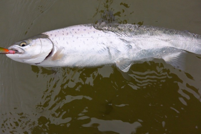 Det var en af de fjordmodeller vi altid går og drømmer om. Løse skæl, sølvblank fjordbamse og en god fight. Bedre bliver det bare ikke sådan en morgenstund i marts.