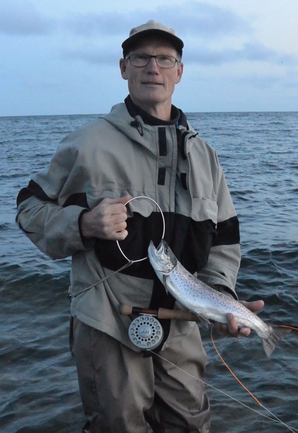 Længere henne af kysten mødte vi Henrik Katkjær der hurtigt havde nappet to havørreder på hans Kobberbasse flue. Den ene var flot 50+ i god stand.