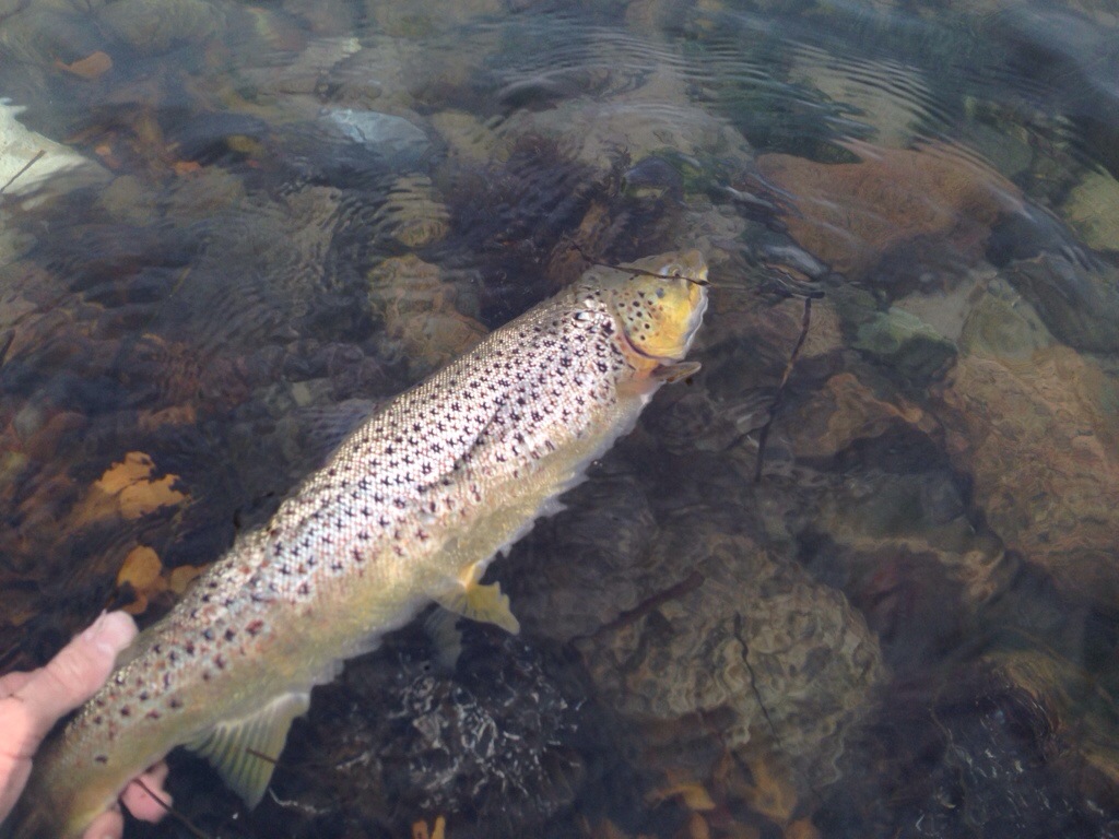 Min fiskekammerat Michael var starte længere henne og fik efter nogle kast kroget en god fisk. Den sagde desværre “pænt farvel” efter kort tid på krogen. Micheal havde haft en fed oplevelse da han havde set fiskens bølge komme over mod fluen inden hugget kunne mærkes. Det giver en helt speciel oplevelse når man nærmest ser hugget på fluen:-)