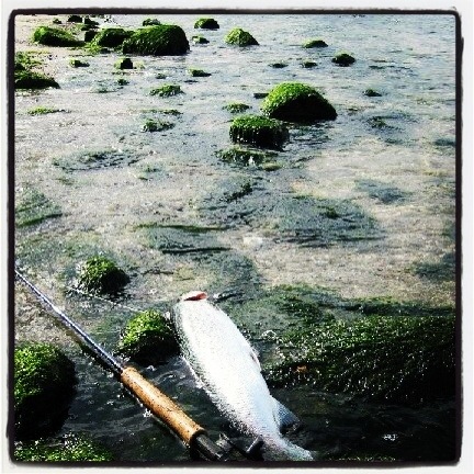 Brian skrev at han havde affisket en længere strækning i den yderst del af fjorden der stadigvæk holder havørreder. Fisketuren gav 2 blanke på henholdsvis 35 og 58 cm samt et par fisk som ikke blev siddende – alt på spin.