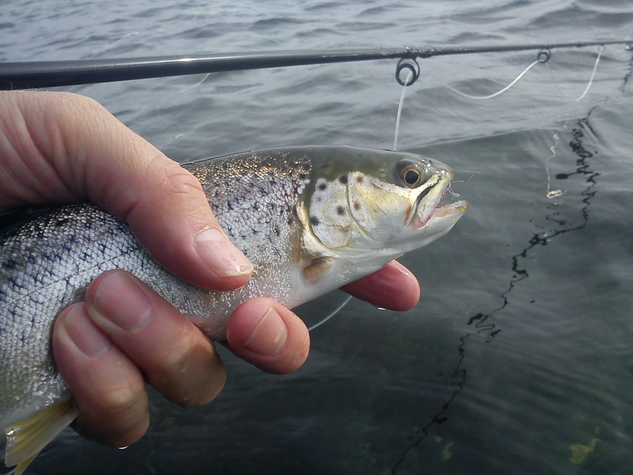 Timerne gik og den helt spejl-blanke overflade var ikke det bedste havørredvejr. Heldigvis var der god plads med meget nyt vand lufte fluer på og på den nordlige strækning var jeg heldig at ramme lille område med havørreder.