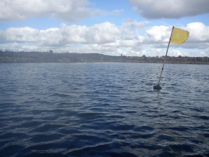 Godt gået er ikke lige det ord jeg vil bruge om nedenstående ruse placering (se sorte makering til højre på billedet). I går var jeg lige forbi Lammefjorden og fik mig desværre en overraskelse da jeg så at der var mange ruser placeret i og nær udløbet af nordkanalen. De behøver ikke at have båd for de kan bare vade ud til ruserne:-(